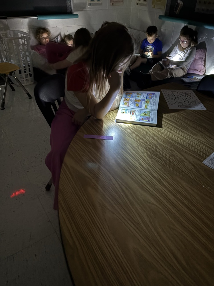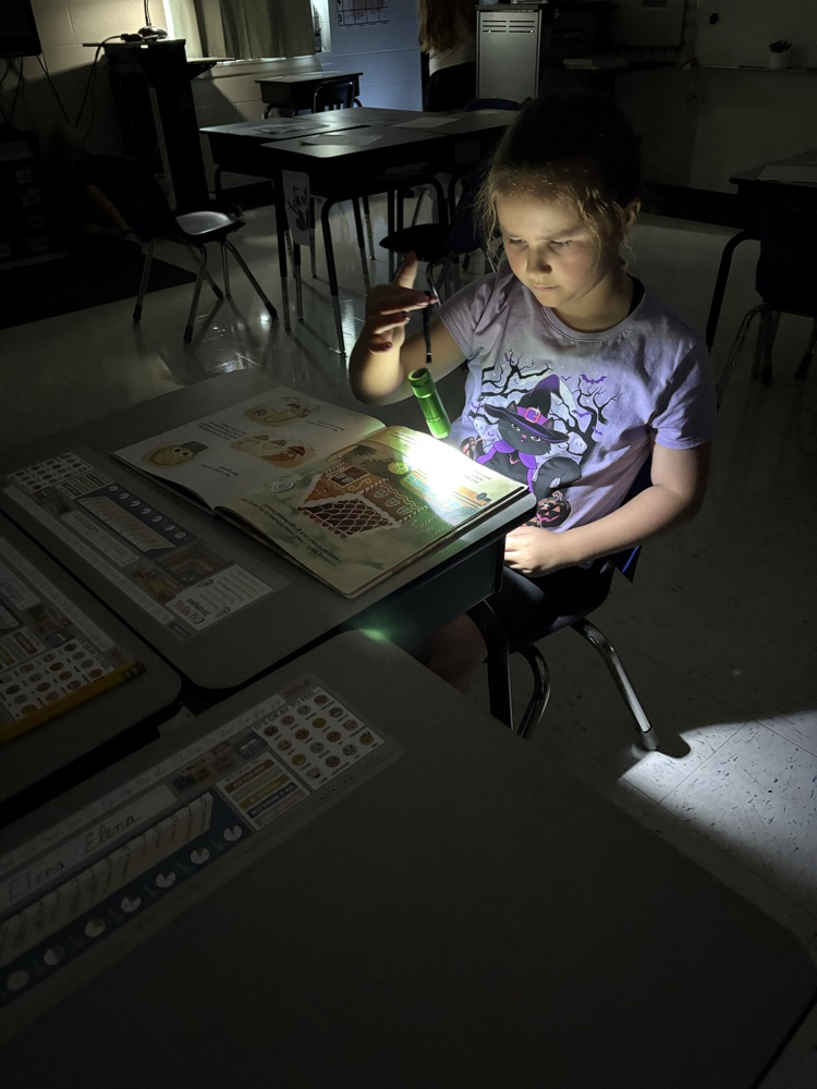 It was time to get the flashlights out in Mrs. Inbodenโs 3rd Grade Class!!